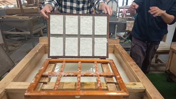 By Shintaro Yagi, Susanti and Yakumo Yokoyama A white man wearing glasses curiously touched the water filled with paper fibers…