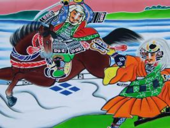 Surprisingly, she gave me furafu. Two samurai, one on horseback, a sword raised over his head and the other in armor ready to do battle were painted on it. That was the historic battle of Shingen Takeda and Kenshin Uesugi (Sengoku era, 1460s-1570s). Never had my family had the furafu because I am a woman and have two sisters, May 5 is for boys!