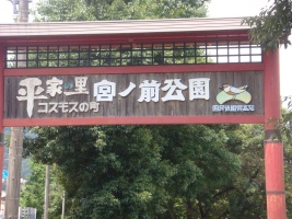 In Miyanomae Park, I saw a plowed field. I couldn’t imagine that the typhoon had attacked there only a week ago. It was well-mended. When I was looking at the field where cosmoses were planted, an old woman walked up to me and asked, “Do you know the floral language of a cosmos?” She suddenly asked me such a question, so I was at a loss what to answer. She continued, “Generally, a cosmos means the purity and the sincerity. But it has different meanings by the colors: the red cosmos means the harmony; the pink one means the love; the yellow one means the beauty of the nature; and the white one means the cleanliness. The flower has so many wonderful meanings. Planting cosmoses in our town represents our love toward our town. I’m really proud of Cosmos Festival being held in Ochi town.” She said that she has planted cosmoses since Cosmos Festival first took place in Ochi town. The festival has a 30-year-old history, but these days, the frequency of abnormal weather has been increasing. She worries whether Ochi town can continue this festival in the days ahead.