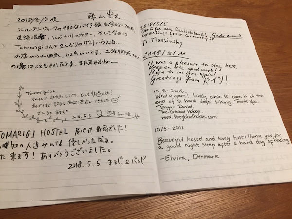 On the dining table is a notebook labeled “Tomarigi note” where, in different languages, many people have left heartfelt messages that basically mean: