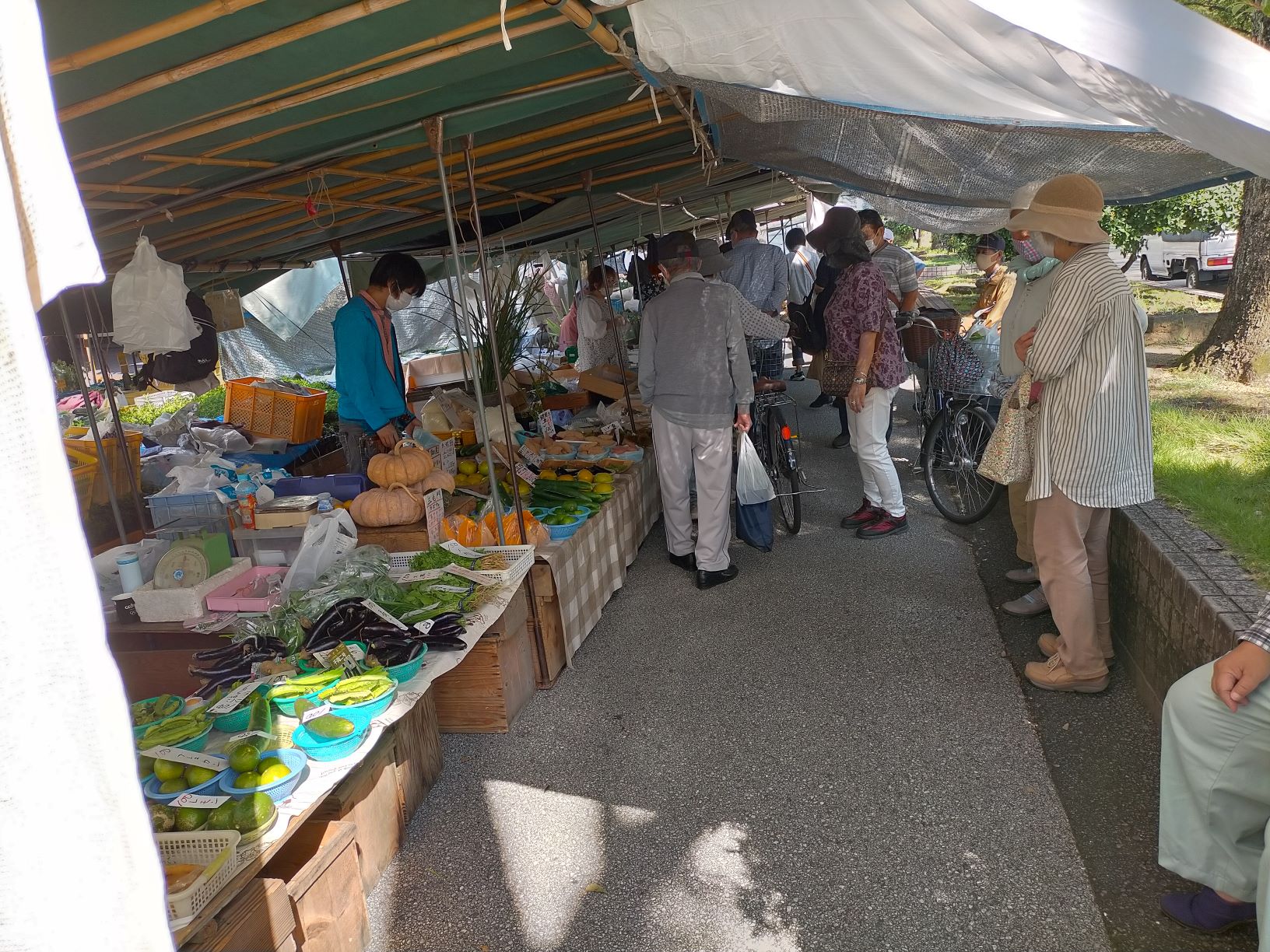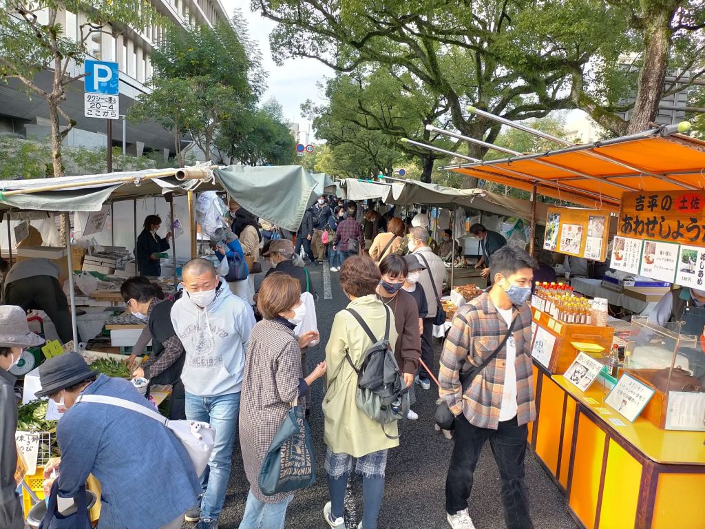 Thursday market is held in nice place. Surrounded by the greenery of camphor trees, with a great view and environment with a close view of Kochi Castle, and there are many people passing by, so it can be said that it is a good location. And there are some big hotels near the market, so tourists also come there.