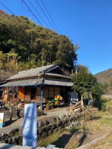 Sandwiched between the mountains and the river, a classic Japanese house stands next to a road. A slightly smaller baby buggy car is parked beside a signboard with the colorful words “SUP CAFE STAY, SUGGOI SPORTS”. The contrast between the pure blue of the sky and the deep green of the mountains is clear to the eyes and time passes by so peacefully that enables one to hear the calming flow of the nearby Niyodo river.