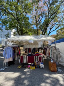 Many shops gathered on this fine day. Kuroshiosai, a school festival, was held at Kochi University for the first time in three years on October 29, and 30, 2022. A school festival is a festival in which all of the planning is conducted mainly by students. There are a lot of shops selling food and general goods. One of the stores was 10(TEN). They sold clothes that they had received from a secondhand clothing store they knew and they no longer wear. A man who is a shop owner of 10(TEN) talks to a person who comes to a store and they are having a lively conversation. There was a suit at the end of the two eyes.