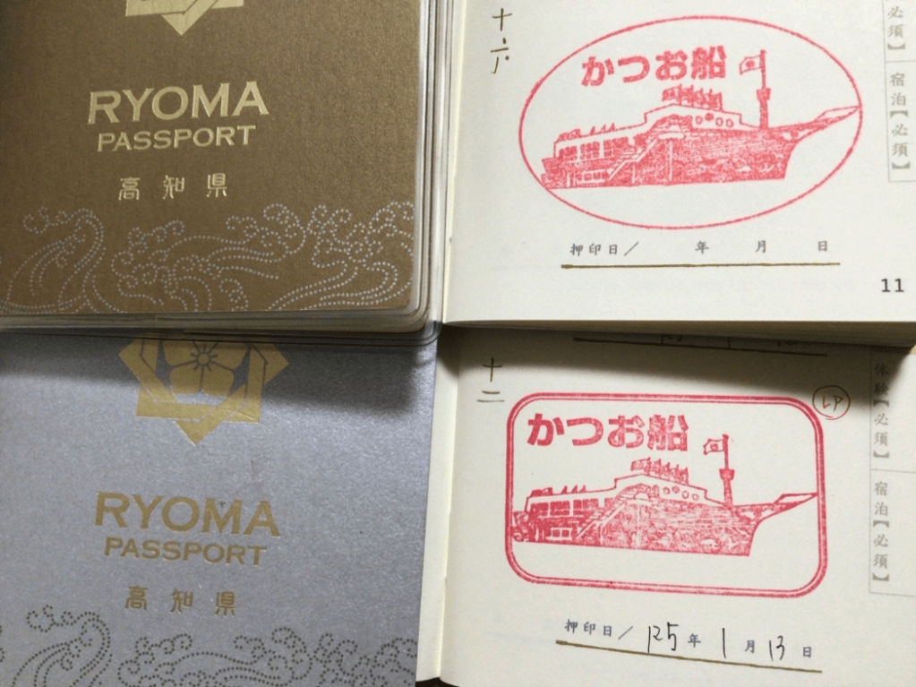 Surprisingly, the “Ryoma Passport” is not just a passport you think. According to the Cambridge Dictionary, a “Passport” is “An official document containing personal information”. However, more than that, the “Ryoma passport” becomes a beneficial item when people visit somewhere around Kochi. This is because they can get special perks only by showing the Ryoma Passport to a staff member. When people visit a place such as hot springs, road stations, and restaurants serving local dishes, they can collect stamps on the Ryoma Passport. The more stamps they collect, the higher grade the passport becomes. There are 5 stages described by their color: blue, red, bronze, silver, and gold. As the passport stages up, you can receive bigger perks. Due to the entertainment of collecting stamps and getting perks, Ryoma Passport can be said to be worth having than a general passport.