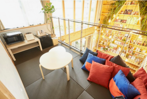 Tomatato is divided into two spaces: a café and a guest-house space. The guests will first pass through to the later space. The rooms have a desk with chairs and a comfortable bed nearby, while twin rooms have even more reclining sofas for guests to enjoy a more relaxing time. There is also a deck overlooking the whole area, which can be used as a common space for chatting or playing casual table games.